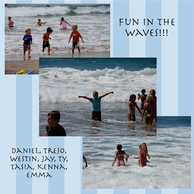 Well nothing beats a day at the beach with family and friends!!! So off we went on Labor Day, we spent 10 hours at the beach! A couple of families from our ward came, and all of our local family. We had 19 kids total and 15 adults, the lifeguards just loved us...... The kids rode their boogie boards all day ( note to self, next time bring Mckenna's Board shorts) and they all had board rash to show for it. We brought all day food, gaga and Sarah brought donuts. We had a great time. Neil, Ryan, Clint and Tony all got out in the waves for some fun as well! We have gone to the same spot with these families for a few years, and we will definitely do it again!!!